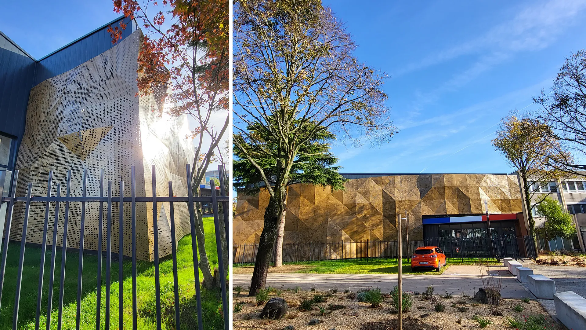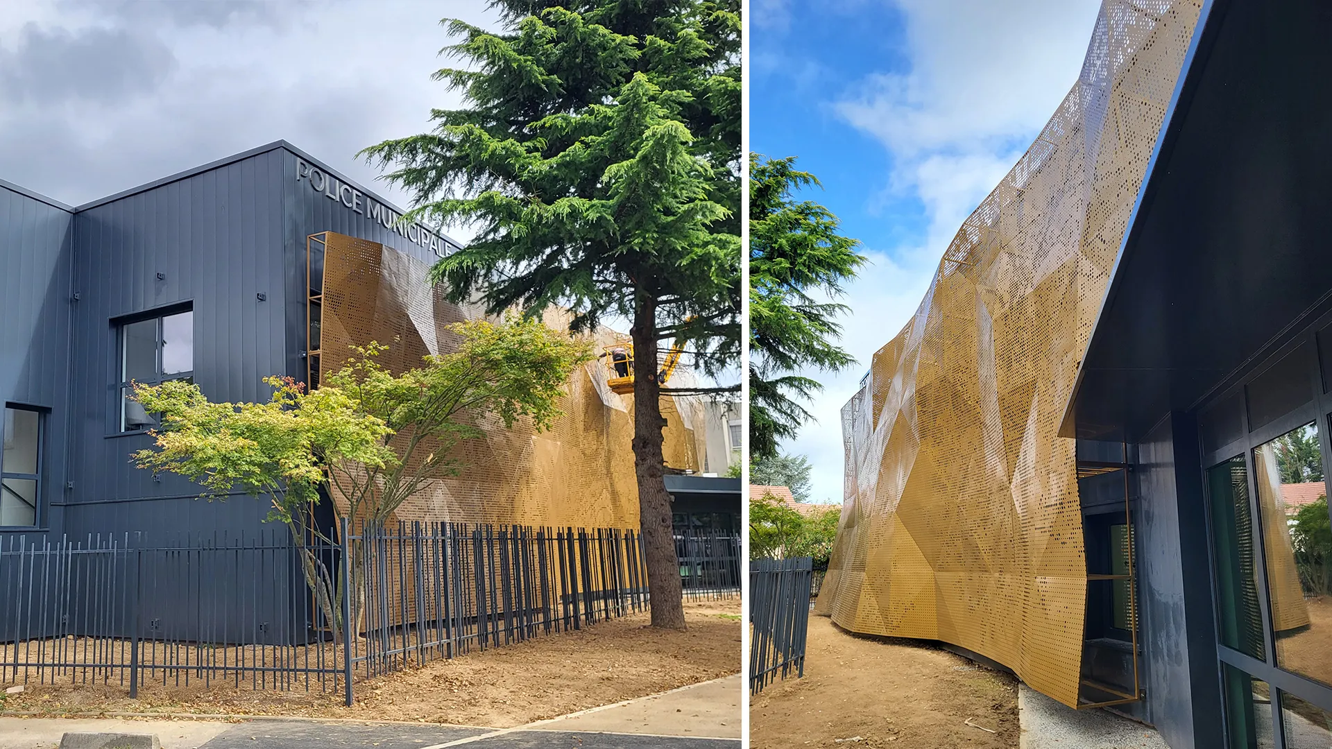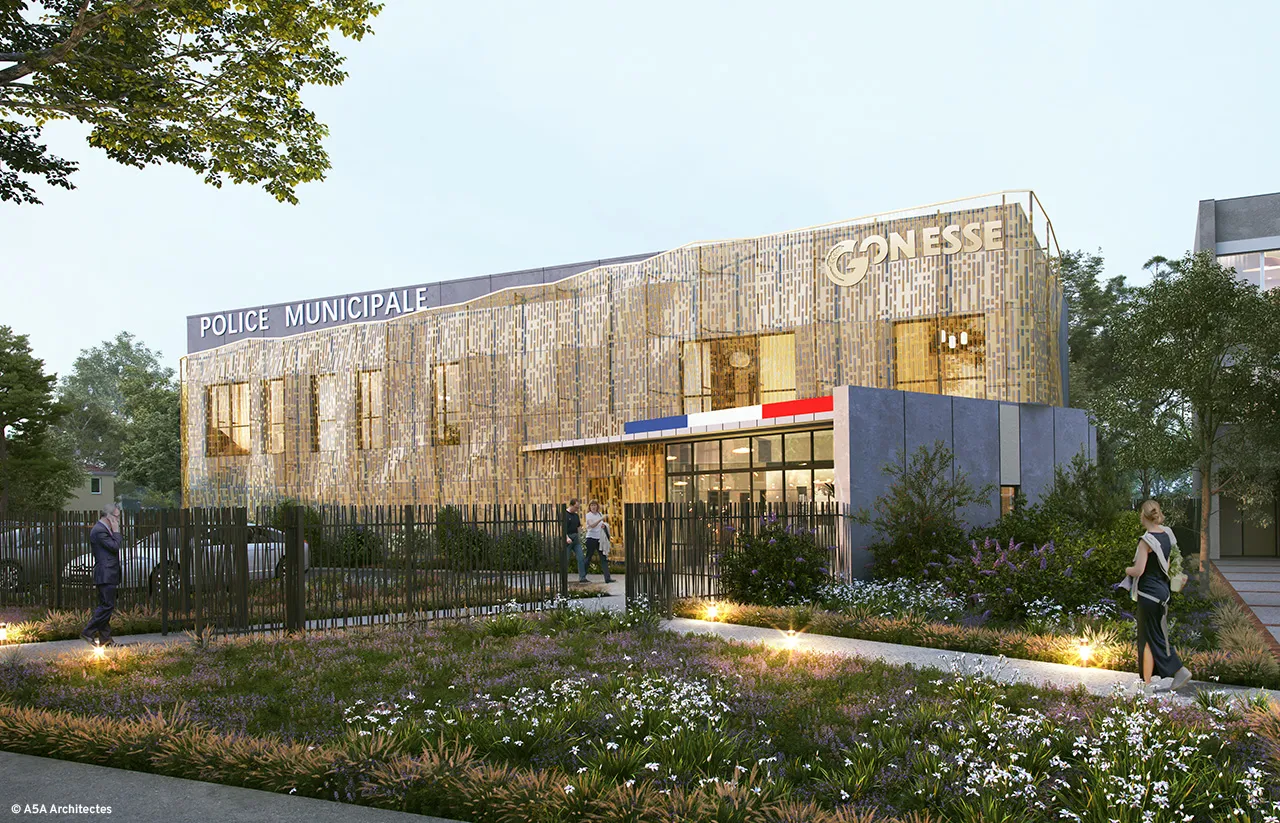 Le poste de police de Gonesse, situé à un emplacement stratégique entre zone résidentielle et zone d’activité, se distingue par son architecture moderne et fonctionnelle. Construit en charpente métallique, il est habillé de panneaux Fundermax et d'une résille métallique, offrant résistance et esthétisme.