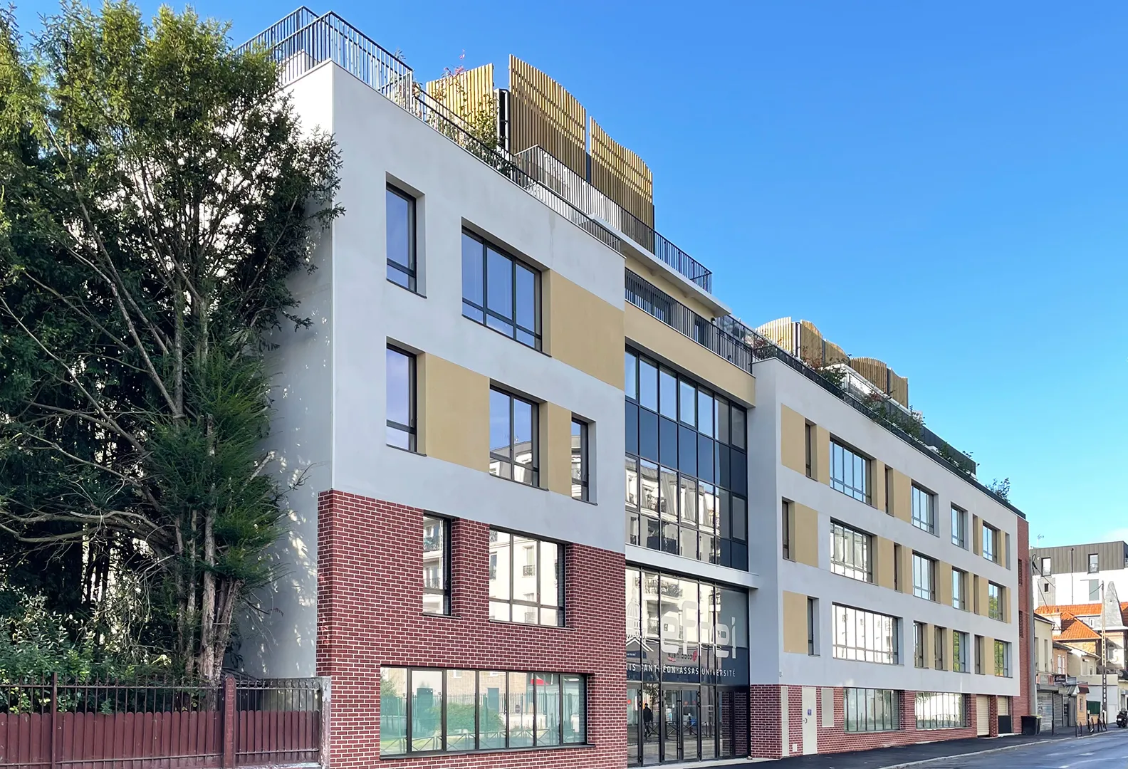 Construction d'un établissement d'enseignement supérieur pour le campus de l'école EFREI avec 29 salles de classe, des espaces de vie étudiante et un grand open space pour le personnel.
