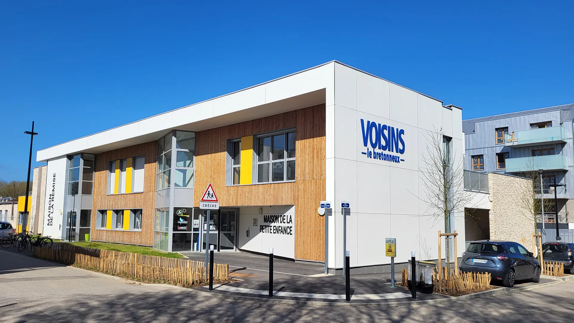Le projet du Pôle Enfance à Voisins-le-Bretonneux (78) regroupe une crèche de 60 berceaux, un accueil Relais Assistants Maternels (RAM) et une salle de proximité, intégrant la rénovation du quartier.