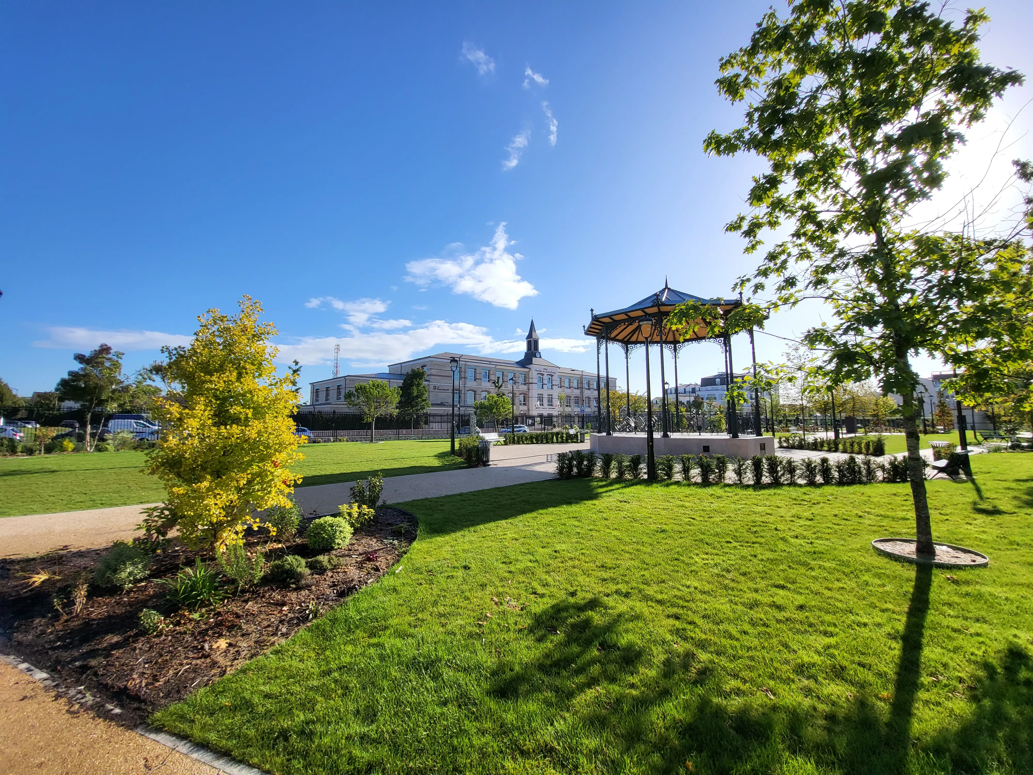 Conception et aménagement du parc Joseph Bologne comprenant : une aire de jeux, une fontaine, un kiosque à musique, une promenade