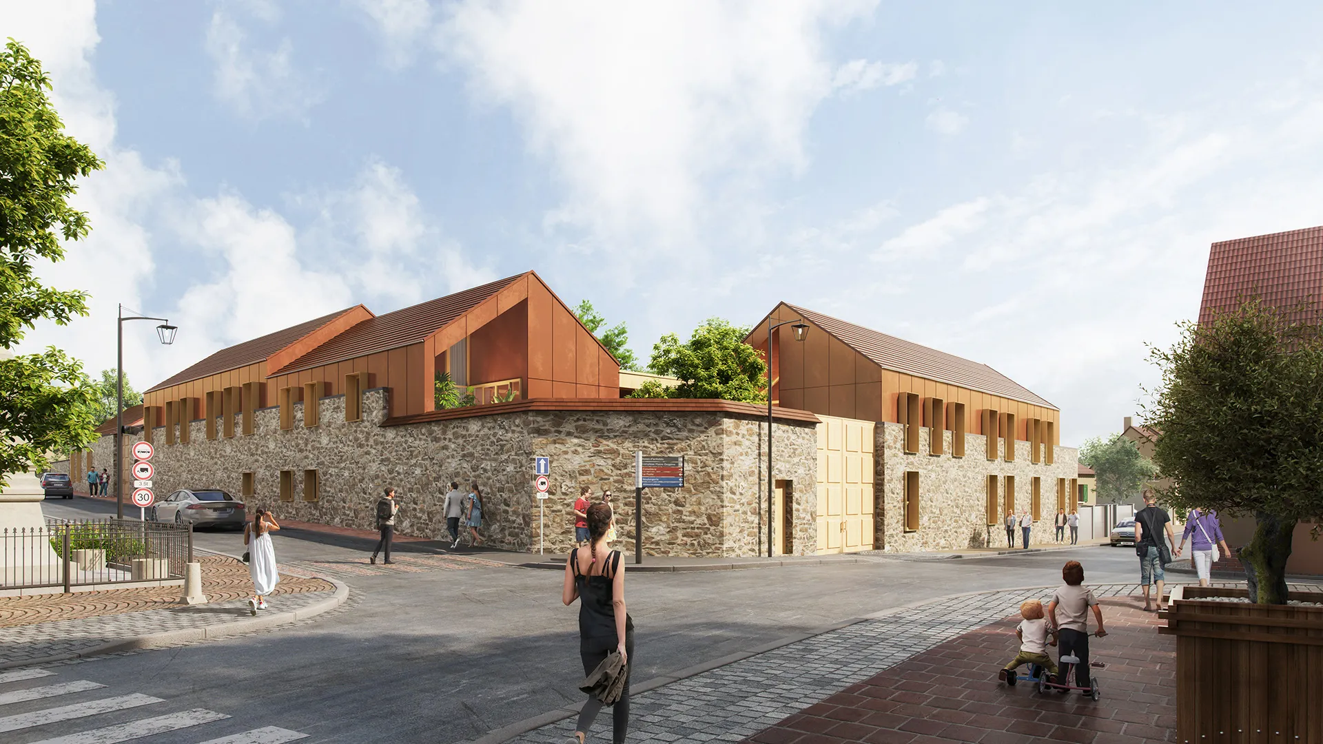 L’architecture du projet marie tradition et modernité, en respectant l’esprit du lieu tout en proposant des solutions contemporaines. Le bâtiment multifonction comprend une maison de santé, une salle des associations, des logements collectifs et des maisons individuelles. L’implantation reprend celle de l’ancienne ferme pour préserver le tissu urbain.