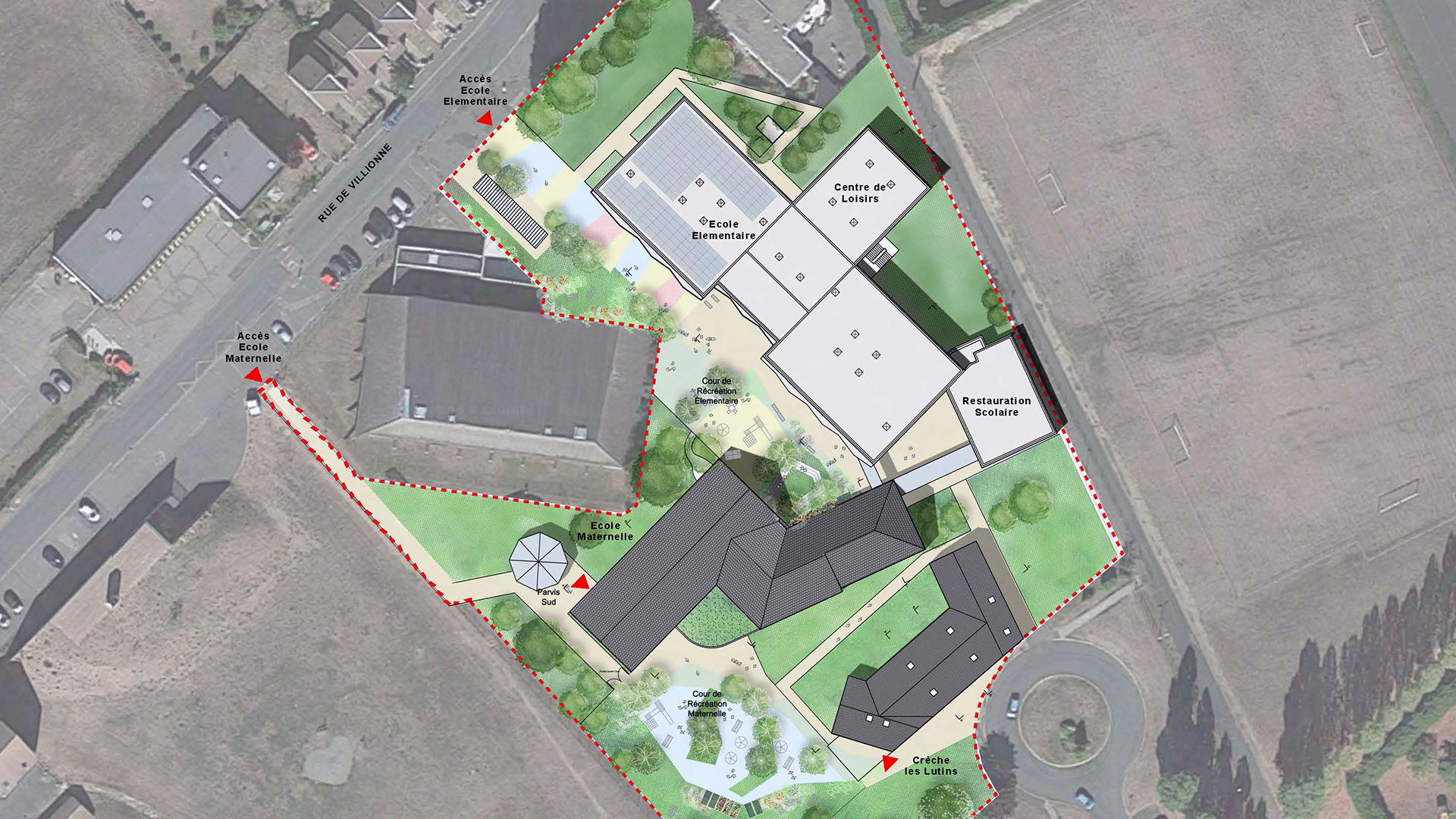 Le projet de restructuration du groupe scolaire de La Chapelle-la-Reine repose sur une démarche respectueuse du site, des usagers et de l’histoire du lieu. Il vise à concilier tradition et modernité : l’architecture s’inspire des toitures villageoises tout en intégrant des procédés constructifs contemporains et durables (matériaux biosourcés, confort thermique, renaturation des espaces).