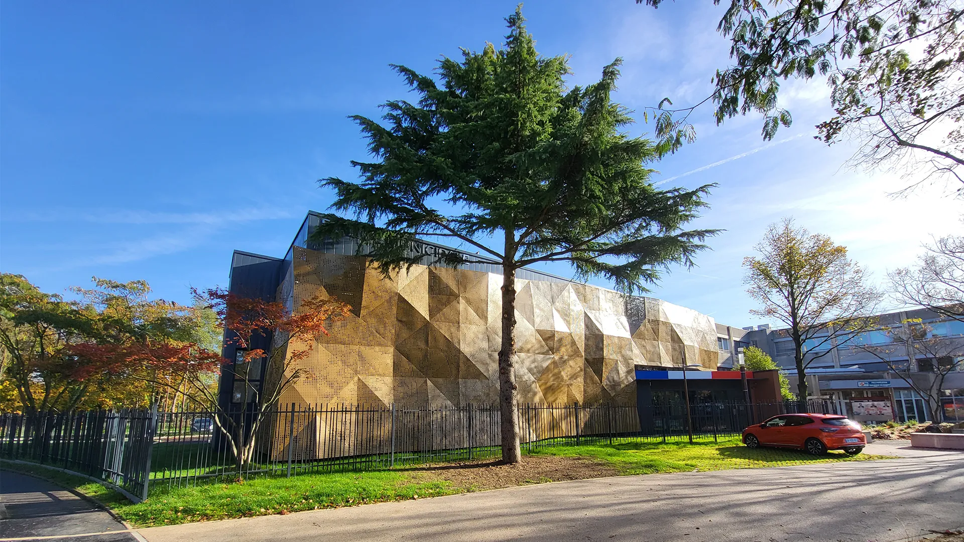 Construit en charpente métallique, il est habillé de panneaux Fundermax et d'une résille métallique, offrant résistance et esthétisme. Les façades sont conçues pour maximiser la lumière naturelle tout en limitant les pertes thermiques. Le nouveau bâtiment est sécurisé et doté d’un haut niveau de sûreté pour protéger efficacement les personnes et les biens contre les intrusions et les actes de malveillance.