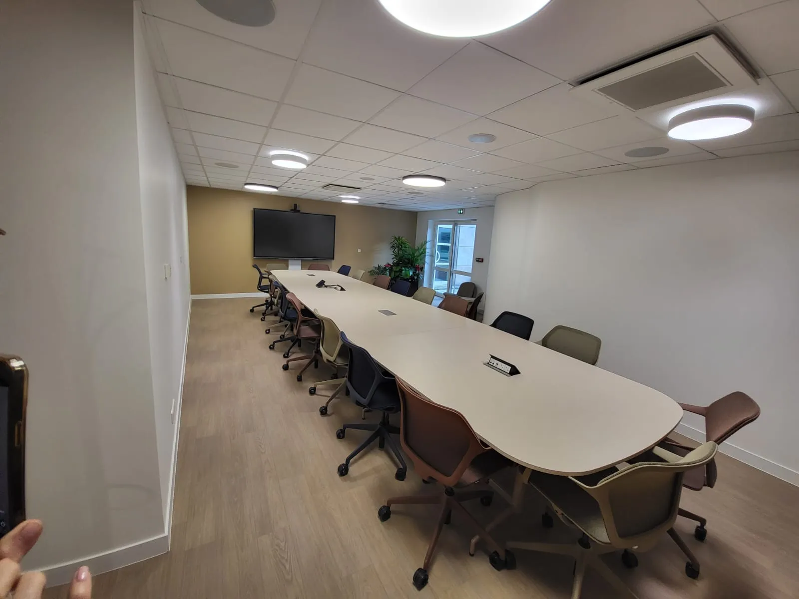 L’aspect extérieur a été conservé, à l’exception de quelques nouvelles menuiseries et d’une signalétique côté avenue de l’Europe. À l’intérieur, tout a été réorganisé. Une circulation centrale dessert l’ensemble des locaux. Le pôle direction possède sa propre aile, accessible par badge.