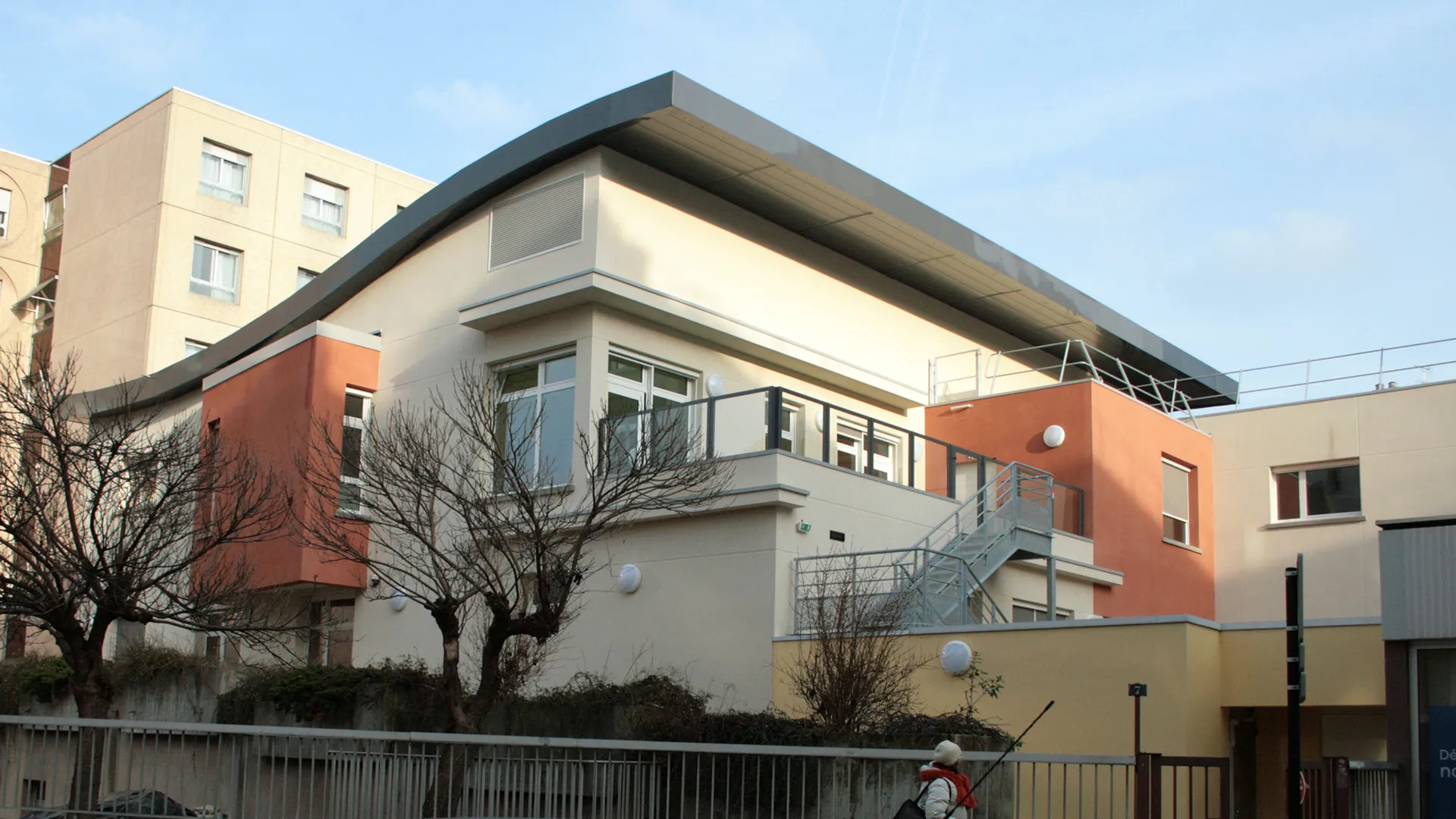 La crèche de 60 berceaux de l'hôpital Broca, située sur une terrasse au-dessus des services de maintenance et de restauration, a nécessité des adaptations dues à sa surélévation et son insertion dans un environnement urbain dense. La construction en béton cellulaire Siporex, léger et isolant, a permis de réduire les ponts thermiques et d'assurer une exécution rapide. Le projet a également pris en compte l'intégration du bâtiment dans le paysage urbain, en optimisant le confort visuel et sonore pour les enfants et le personnel, tout en requalifiant les volumes entre les bâtiments voisins.