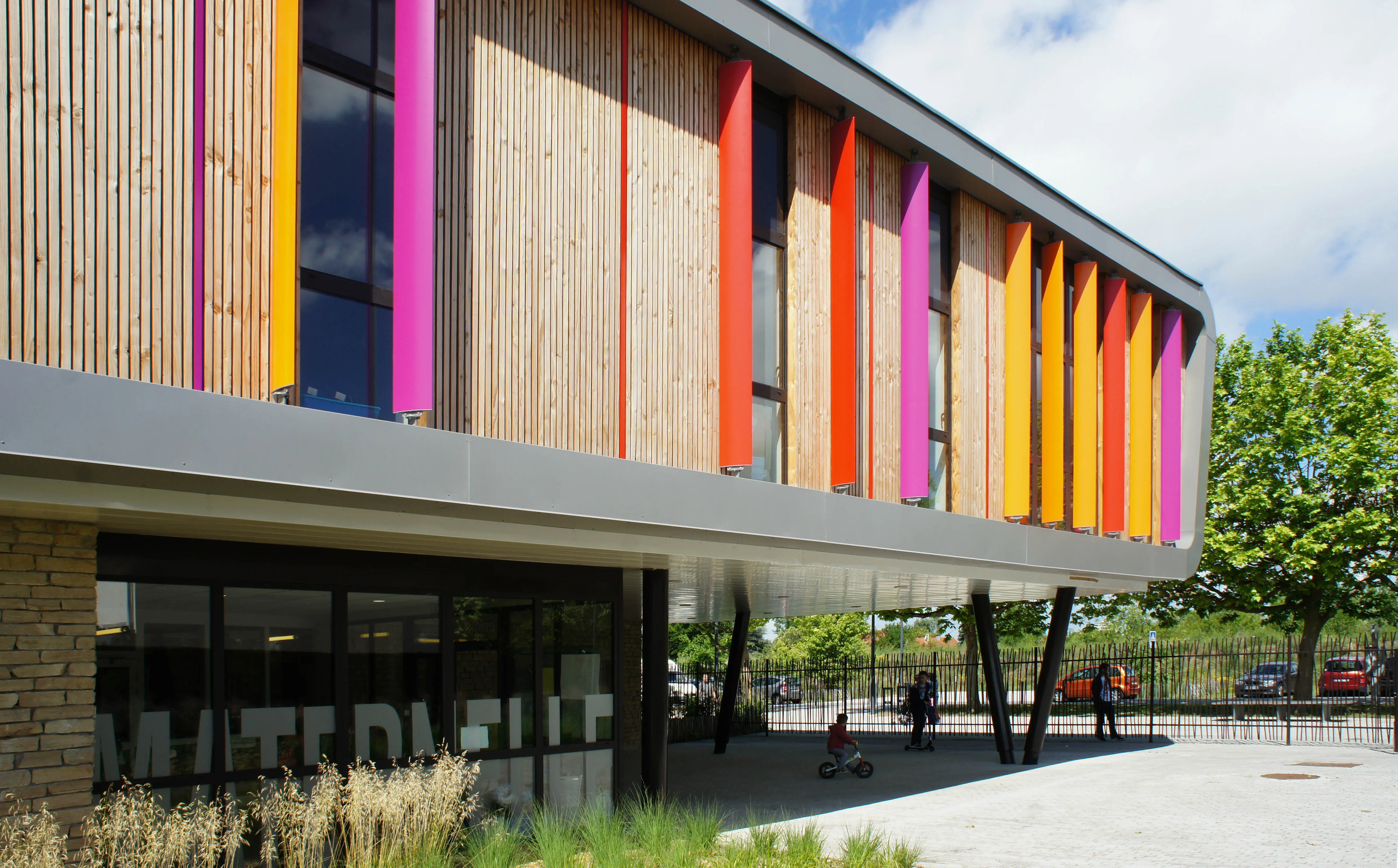 Notre volonté a été de constituer un front urbain de qualité, renforçant l’identité de l’équipement public tout en mettant en avant le caractère verdoyant du lieu. Avec ses volumes travaillés, ses couleurs lumineuses associées au matériau bois, l’école Denise Albert offre une architecture singulière, ludique et contemporaine et une ambiance chaleureuse et design à ses utilisateurs.