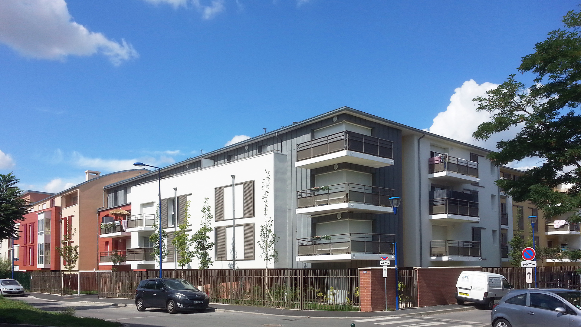 Réalisé dans le cadre de l'aménagement global de la Zac Chantereine, cet immeuble de 62 logements locatifs s'harmonise, par la simplicité de ses volumes et le traitement en toiture zinc, avec les projets alentour.
