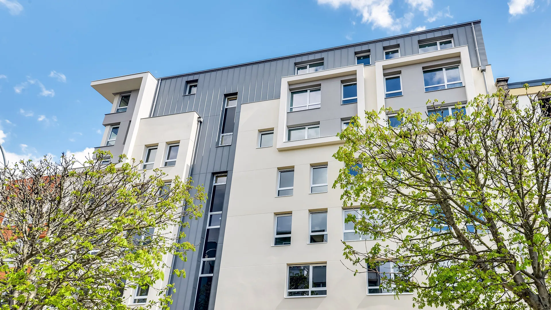 A5A Architectes propose une construction compacte, avec un chauffage au gaz et des panneaux solaires thermiques pour couvrir plus de 30 % des besoins en eau chaude. Le projet se distingue par des matériaux labellisés et une optimisation des ouvertures pour maximiser la lumière naturelle et le confort visuel. Les volumes sont simples, intégrés aux bâtiments voisins. Les façades sont traitées avec des matériaux tels que le bardeau en terre cuite et le zinc pour harmoniser l’ensemble. Le bâtiment respecte les normes PMR, avec 5 % des logements adaptés.