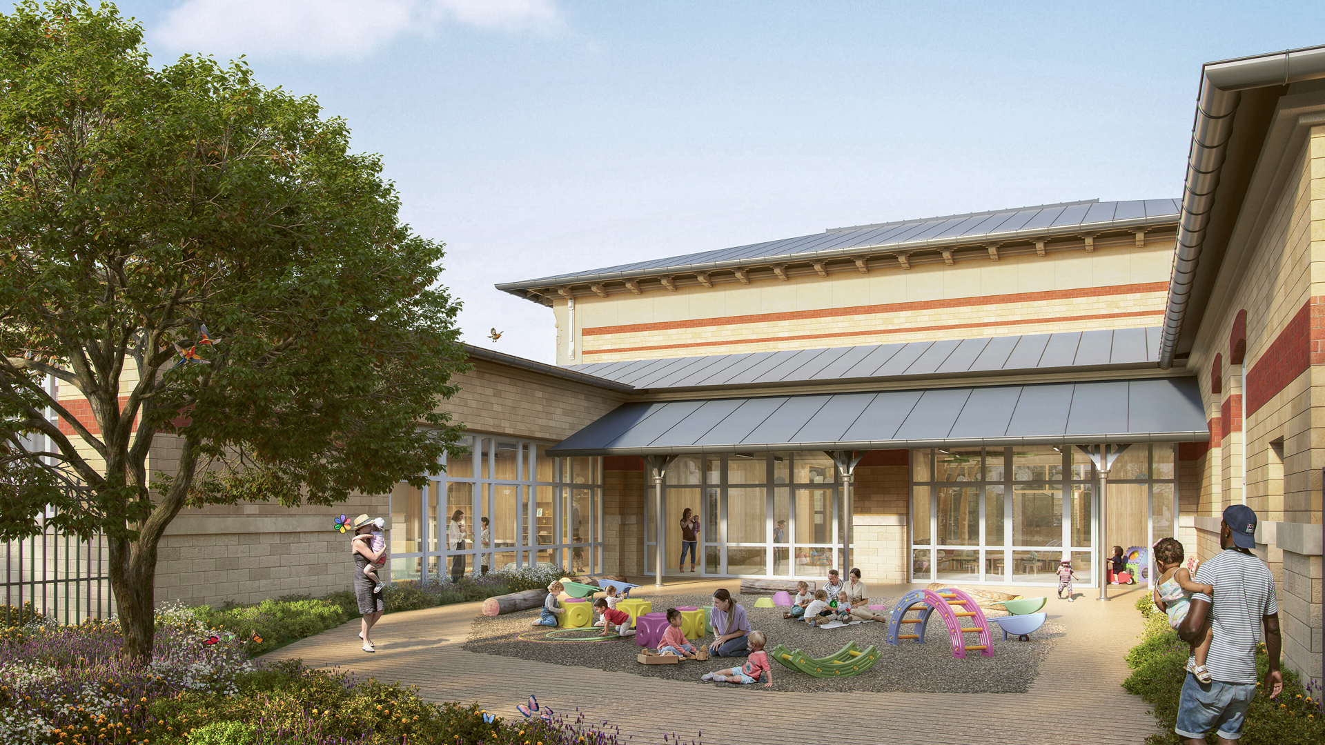 Le projet adopte une écriture néoclassique contemporaine, en cohérence avec l’ambition urbaine portée par la Ville. Sobriété, lisibilité et proportions maîtrisées permettent à l’équipement d’affirmer son rôle civique tout en s’intégrant harmonieusement dans le tissu pavillonnaire existant. L’échelle du bâtiment, les volumes protecteurs et les façades largement ouvertes ont été pensés avant tout pour le bien-être des enfants.