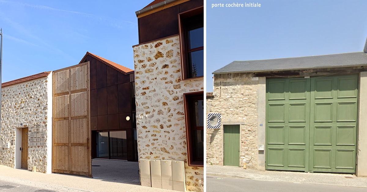🚪Une attention particulière est portée au portail d’entrée, pensé comme un signal discret valorisant la maison médicale depuis l’espace public. Cet élément reprend la porte cochère initiale de la ferme.