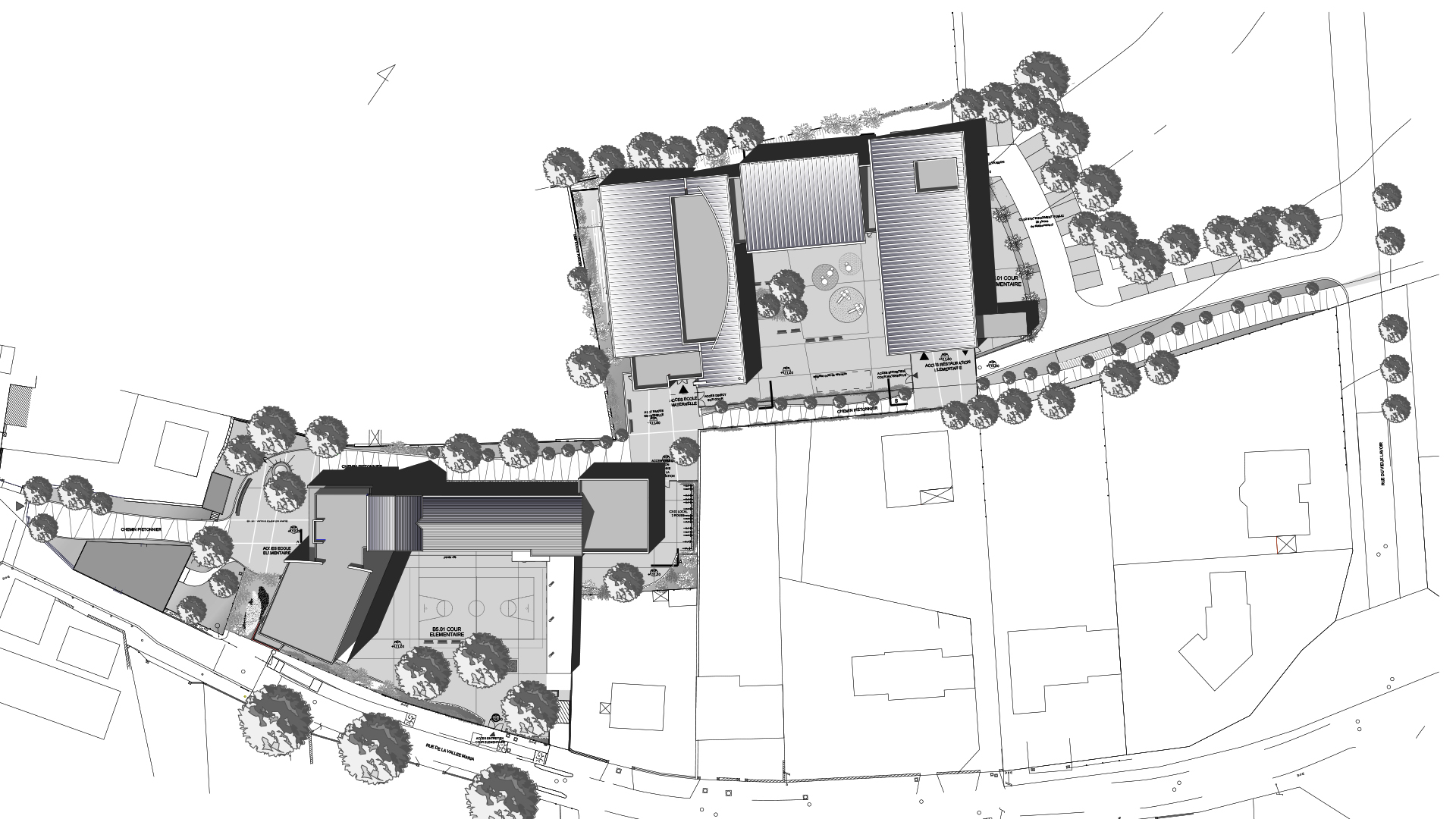 - Construction de l'école maternelle (3 classes), du restaurant scolaire, d'un sentier piéton et réhabilitation / extension de l'école élémentaire existante (6 classes)