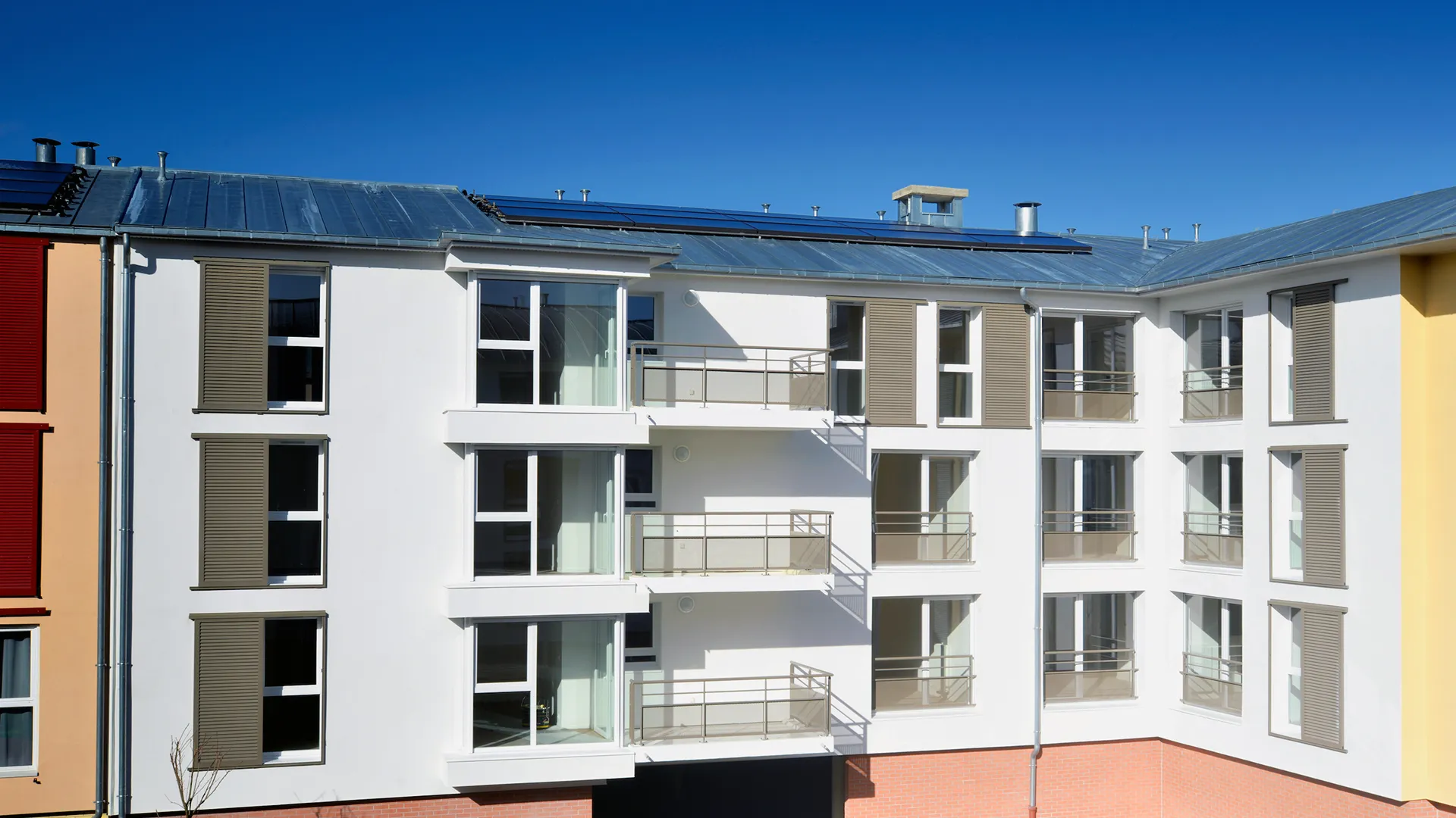 Réalisé dans le cadre de l'aménagement global de la Zac Chantereine, cet immeuble de 62 logements locatifs s'harmonise, par la simplicité de ses volumes et le traitement en toiture zinc, avec les projets alentour.
